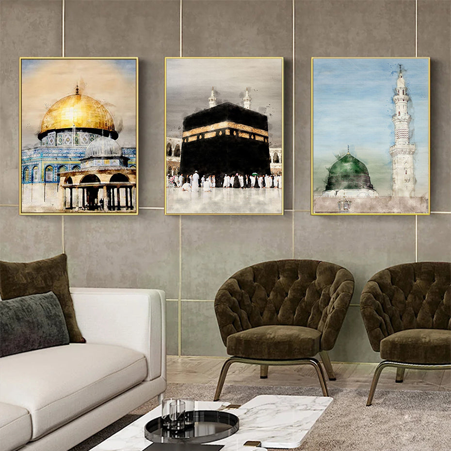Islamic Masjid Mosque Allah Mecca Medina Kaaba Sacred Place Posters Canvas Painting Print Wall Art Pictures Living Room Decor